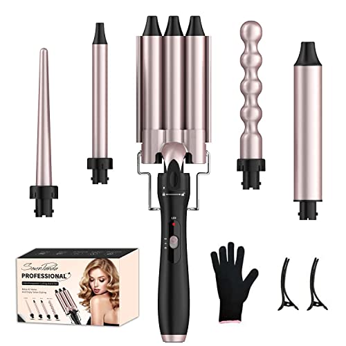 SevenPanda Lockenstab set 5 in 1 mit 3 Fässer Welleneisen für große/mittlere oder kleine Locken Lockenstäbe,Lockenstab set 5 in 1 Welleneisen - Lockenstäbe 3 Fässer mit Einstellbarer Temperatur... [mehr lesen]