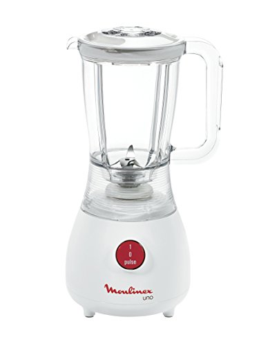 Moulinex Batidora de Vaso LM2201, potencia de 350 W y capacidad de 1,25 L (1L útil), función Pulse, jarra de plástico, jarra medidora, cuatro cuchillas afiladas, uso seguro, apto lavaplatos, blanco... [leer más]